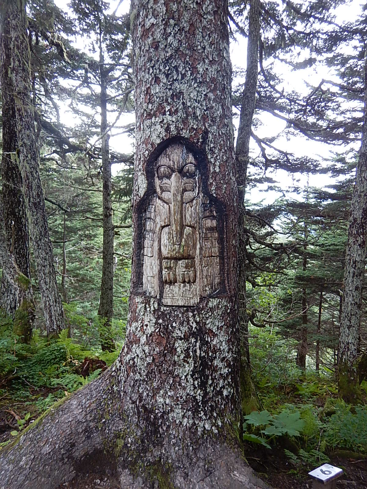 Saturday, Juneau, blue skies and sunshine. Juneau is the Alaskan State Capital (formerly home of Governor Sarah Palin). It is very small, and only accessible by air or sea. We enjoyed looking around, there was more of a mixture of souvenir shops and ‘real’ local shops and an excellent café serving coffee roasted in Juneau. Perhaps the most impressive thing was the Bald Eagles we could see circling above the streets and roosting in the trees which covered the vertical mountain side towering above town about 4 blocks back from the harbour. We took a cable car to the top of the mountain, the views were terrific, we had planned to walk back down to town but the signs said the path was steep and rocky and we were warned that it was wet and muddy due to rain the previous day. We decided not to walk down but we did follow a trail around the mountain top which was short but very pretty.