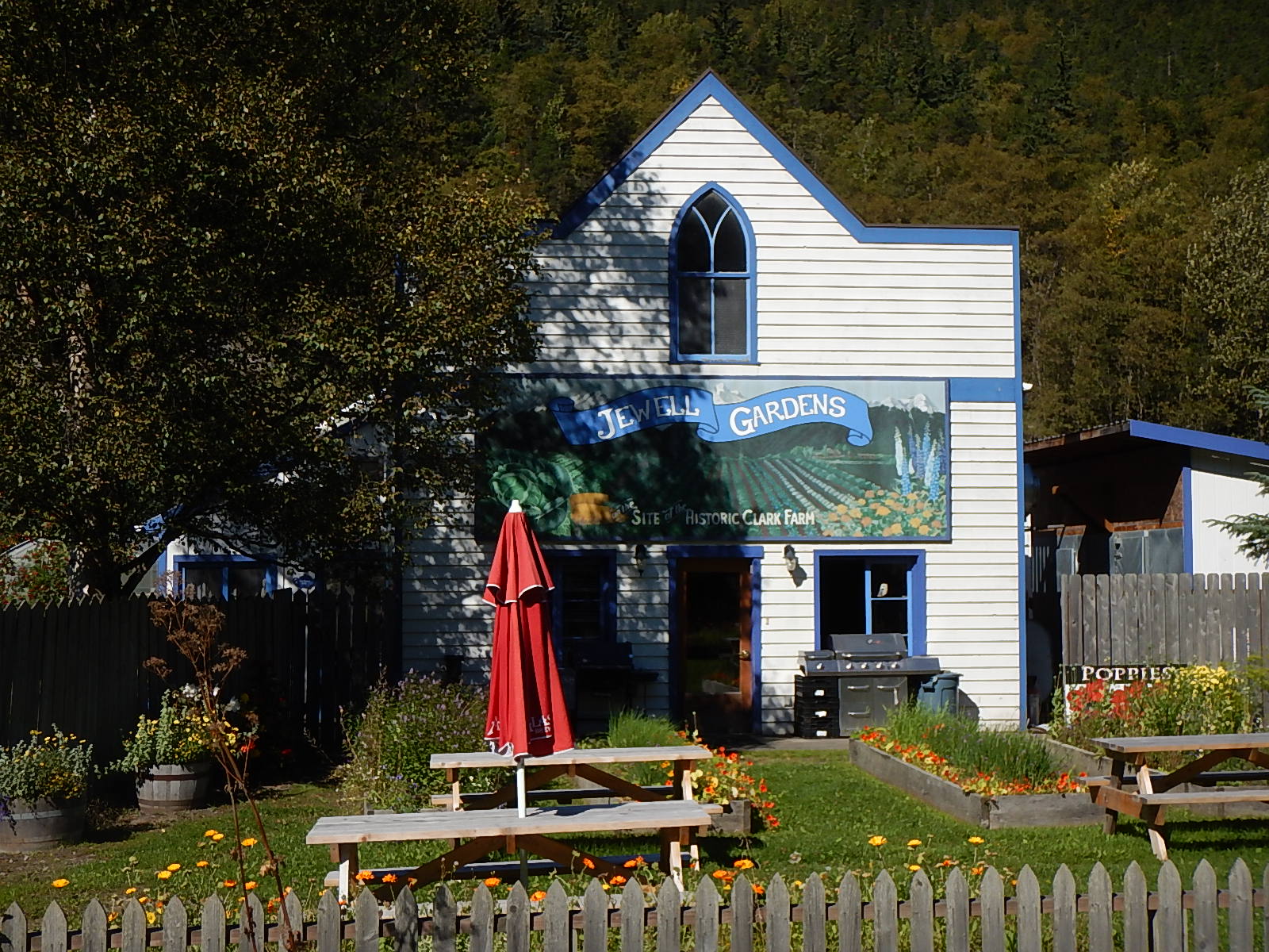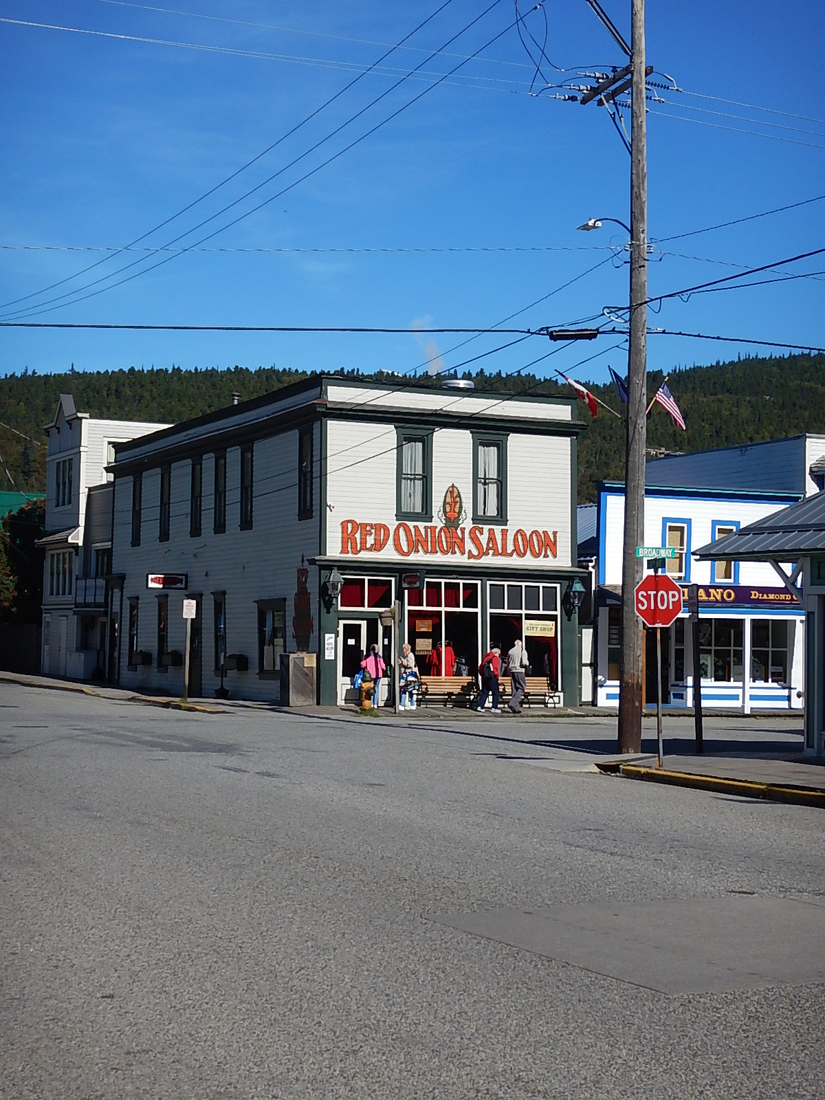 Sunday, more blue skies and sunshine – everybody (i.e. seasoned Alaskan cruisers and crew members) tells us this weather is really unusual and that we are incredibly lucky to have it, apparently Alaska is often misty and rainy. Taking advantage we headed ashore to explore Skagway, the smallest of the three ports of call and a town that grew up to service the gold rush. Skagway is exactly what you would imagine a gold rush town to be, clapboard buildings, raised wooden pavements and clear clean air. We walked across town passed saloons and stores selling camping and hiking equipment; about two miles from the ship we crossed the town boundary and walked a bit further until we reached Jewel Garden, a small botanical garden which had been recommended by a fellow passenger. It was lovely to look around and we were particularly intrigued to see the vegetable beds. For several weeks a year Alaska gets 24hours of sunlight, one consequence is that lots of plants grow much bigger than elsewhere. We saw cabbages which were 2 foot in diameter and Kohl Rabi the size of footballs. By the time we had walked back to town it was getting quite hot so we headed back to the boat and spent the afternoon next to the pool – we almost had it to ourselves, most people had gone ashore on excursions. I swam, lying on my back looking at the snowy mountain peaks, and spent a very pleasant happy 40 minutes in a hot tub having the Brexit/Trump conversation with a man from New York.