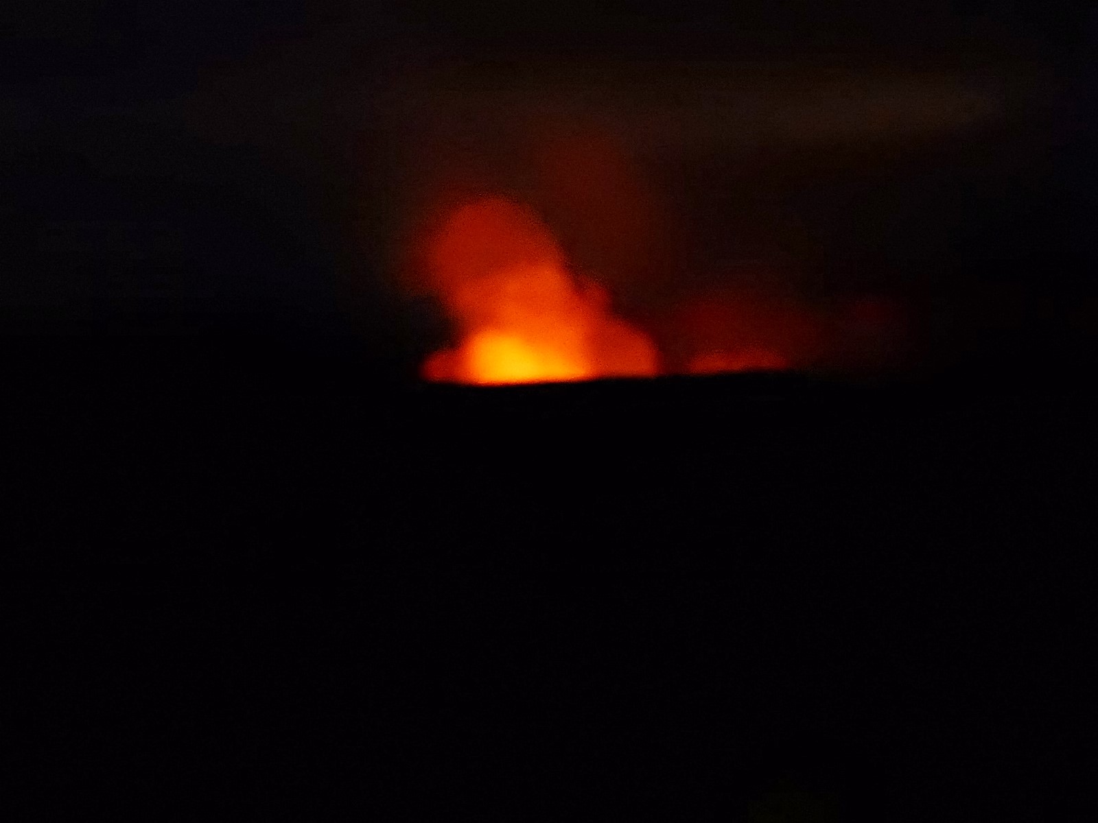 Sunset in Hawaii is about 18.30, we sat in the lounge looking over the crater, as the sky got dark the cloud of steam took on a red glow until, once the sun had disappeared we could see the red flare from the lava sending a plume into the sky. Even in the restaurant we couldn’t take our eyes from it, and it took us a while to draw the curtains in our room which looked straight across the crater.
