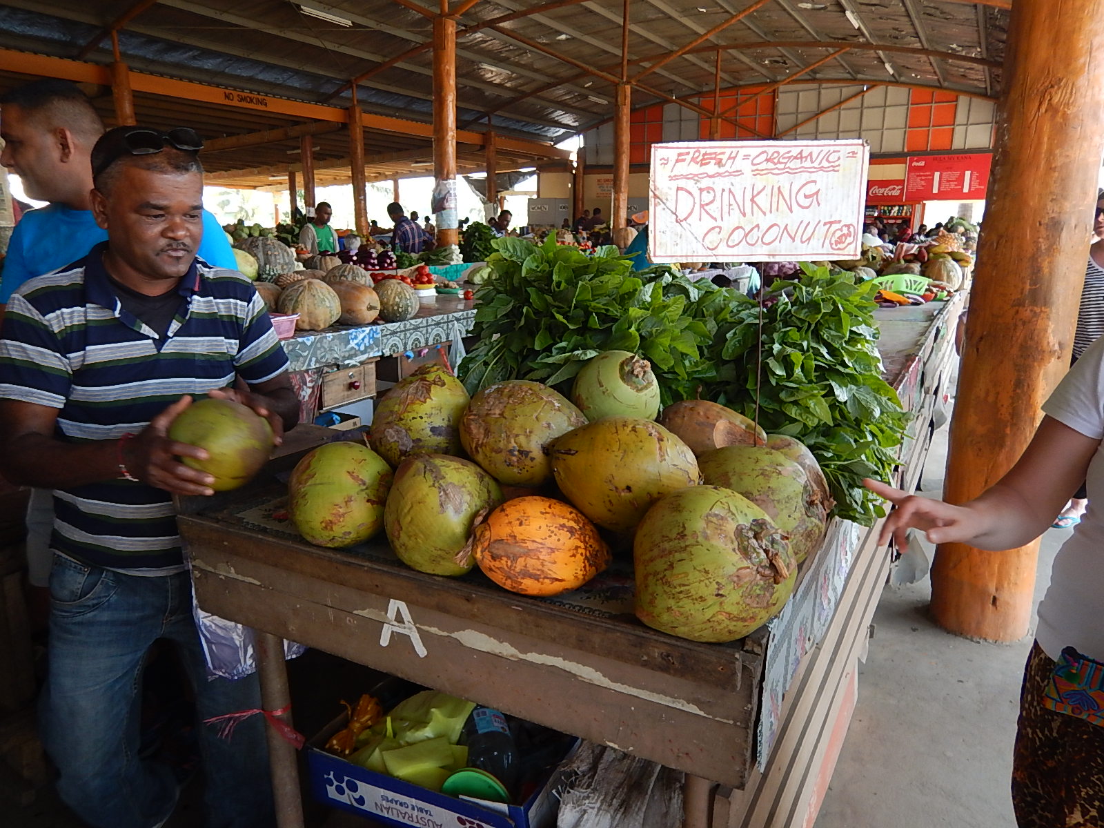 Our first stop in Fiji was at the Westin Hotel on Denarau Island just outside Fiji’s second biggest town Nadi on the west coast. The capital is Suva, about 3 hours away. Denarau Island was created by draining swamp land to create a focus for the growing tourist industry, there is a golf course in the middle and around the outside they have built two Sheratons, a Hilton, a Sofitel and the Westin (there maybe others but those are the ones we saw). There is also a Marina, Port Denarau, where all the fishing and diving trips and day cruises go from. It is all very upmarket and glossy but apart from the lovely Fijian people who work there it is all a bit generic and sterile. The most bizarre thing about the Denarau Island holiday paradise is, there is no beach!! Our room was very comfortable, the pool was nice and there were two restaurants and a café. The one outstanding feature of the hotel was the breakfast buffet!! It had everything you could think of including a juice bar where you could blend your own juices from bowls of fruit, veg herbs and spices. It even had complimentary sparkling wine (Blanc de Blanc) every morning just in case you needed to pep up the orange juice.
