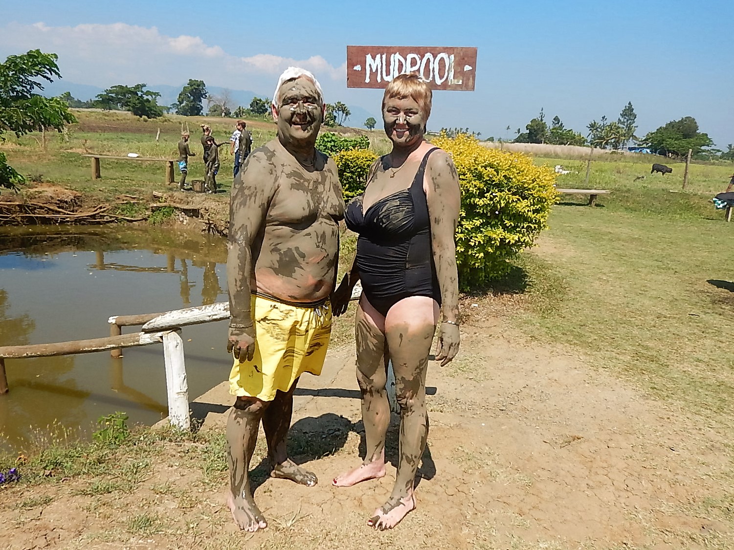 Next stop was a beautiful botanical garden which has been created in a cleft between two hills, it was established by the actor Raymond Burr(!) and has a display of over 2000 orchids as well as a walkway that winds through lovely gardens planted beneath the natural trees. It was really lovely. The last stop was a place with a mud pool and natural thermal pool, we had great fun covering ourselves with mineral rich mud (at least that’s what they told us it was) then after it had dried rinsing it off in one pool then moving into the thermal pool which was almost 40⁰C, only just bearable.