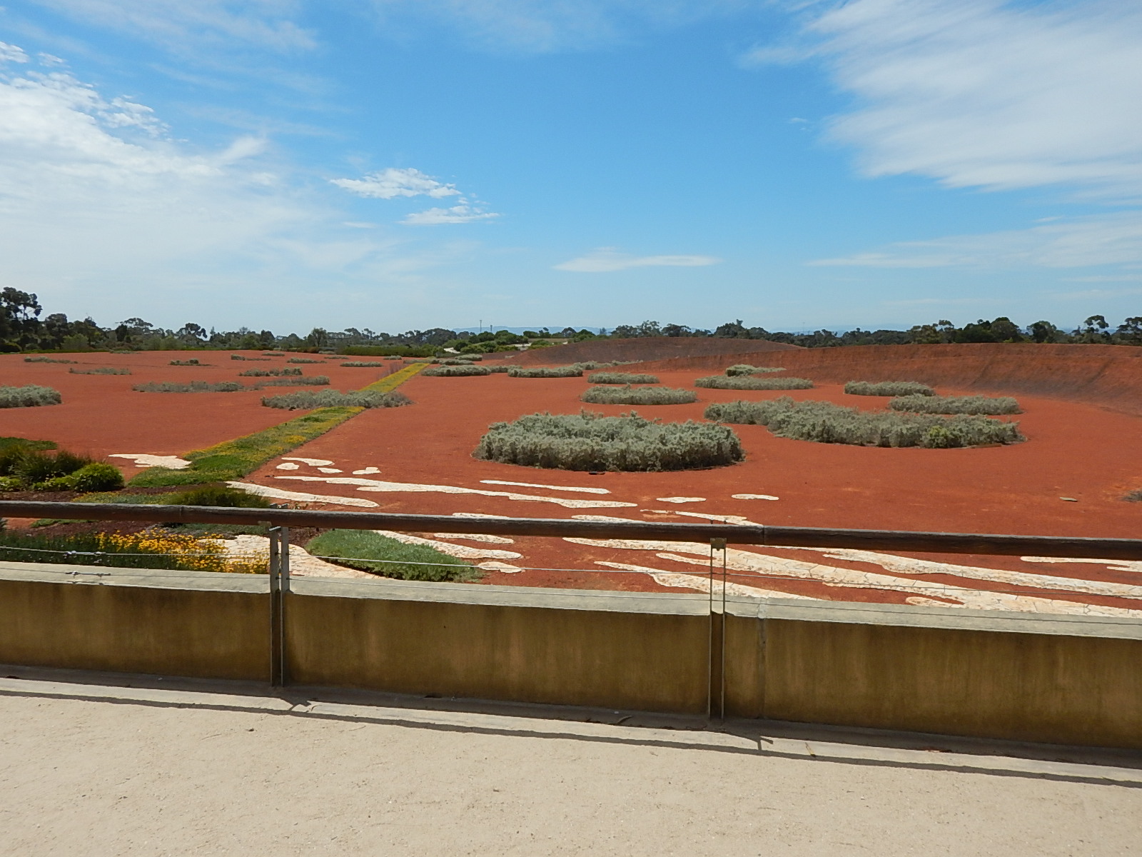 Monday was even hotter, the forecast said 35⁰C with heavy rain at night. We had planned a trip south of Melbourne to visit Phillip Island and see the Little Penguins (they are the smallest species) which come ashore at dusk so once again we packed hats and sunscreen and Jenny added jumpers and raincoats in case it got cold waiting for the penguins! It was about 2 hours to Phillip Island so we had all day to get there, on the way we stopped at the Australian Garden, part of the National Botanic Garden, which we had heard about from an Australian family we met on our wine tour in Hawkes Bay. Terry and Jenny hadn’t heard of it and we didn’t know what to expect but we saw the sign so we stopped to have a look, we were glad we did. Historically the site was a nature reserve protecting a large area of native Australian bush; four years ago part of it was developed as a modern botanic garden highlighting native flora and recreating a variety of different habitats from across the country. We were keen to have a look around but it was very hot, it was a large site and there was very little shade available. As we hesitated we spotted a little open sided tour bus which did guided tours with commentary, we spoke to the driver and, although she was expecting a tour group that was attending a lecture she agreed that she had time to take us around the garden while she waited. We paid our Aus$7 each, hopped on the bus and enjoyed a guided tour through the gardens. It was interesting and we learned a lot about plants and shrubs in Australia. When we finished we found a picnic area and had a feast of cheese and fruit and other goodies Jenny had picked up at the farmers market. It was still very hot but we had to shelter from a sharp shower and we could see the weather was changing as clouds gathered.