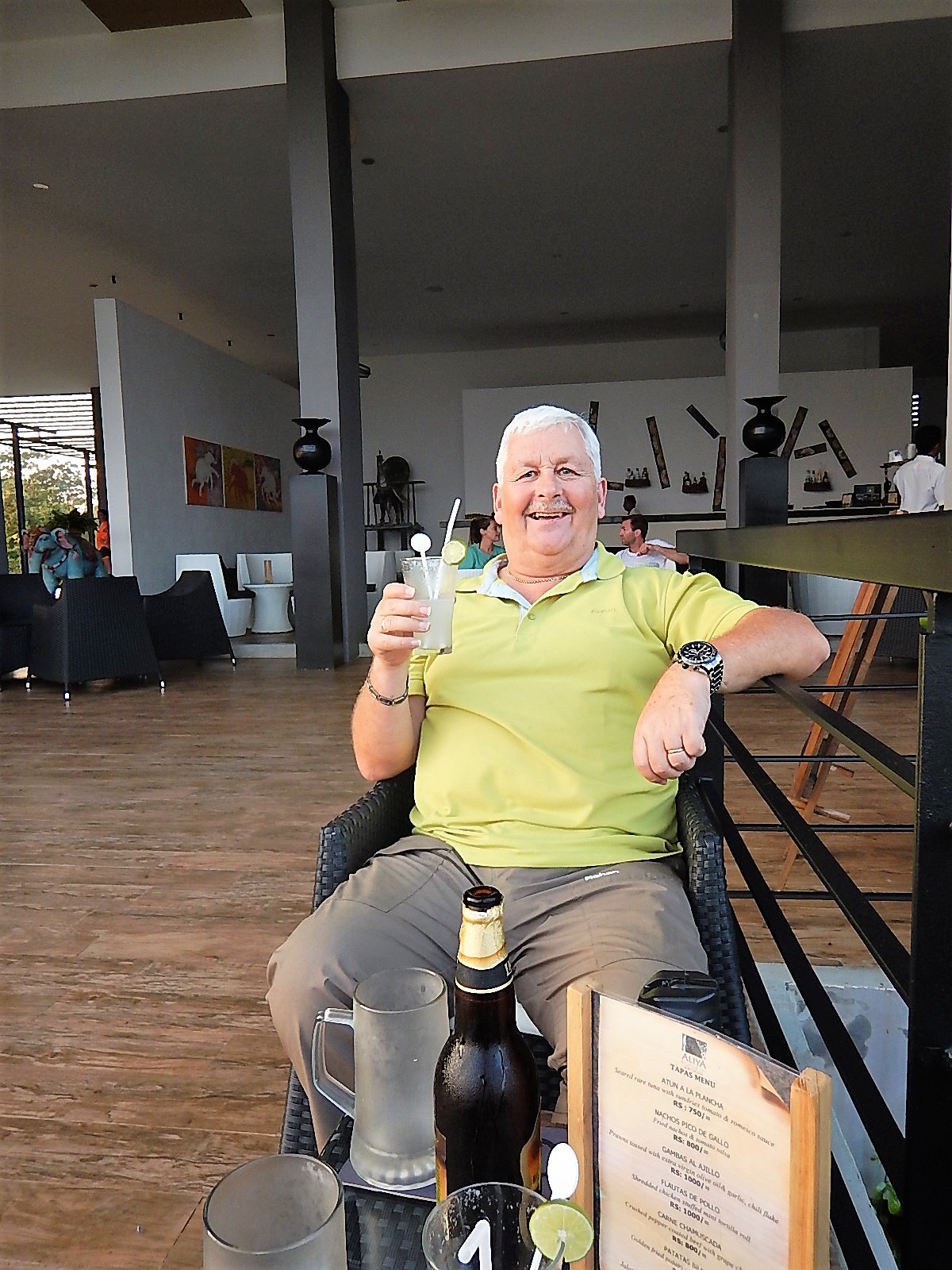 That night Odi took us to a local restaurant about 10 minutes from the hotel, we would never have found it on our own, it was tucked down an alleyway behind a bungalow but it was great. The tables were on a terrace under a thatched roof, in the middle a chef was cooking roti (flat bread like Indian naan) over a wood fire in a stone hearth. We started with coconut roti with coconut sambal (grated coconut with chili, lime juice and salt) and a bowl of vegetable soup; next we shared a bbq platter with fish fillets cooked in banana leaves, prawn skewers, chicken, spicy rice and grilled pineapple; we finished with fresh fruit, it was a great experience and the food was delicious.