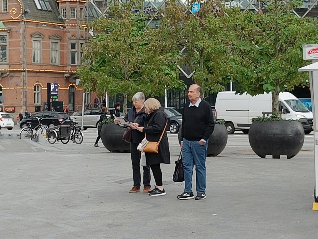 A very helpful receptionist pointed us towards a restaurant almost across the street that specialised in traditional Danish food, we set off to see if we could get a table. The restaurant was very busy but the waiter found us a table on the pavement terrace, we were lucky that it was a mild evening and the fresh air was welcome, after five hours on the train. We all enjoyed a lovely meal but the portions were huge. Mark ordered a pork stew in paprika cream sauce, it was served in a cast iron cauldron and would easily have served all four of us, it came with a big bowl of really delicious mashed potato.