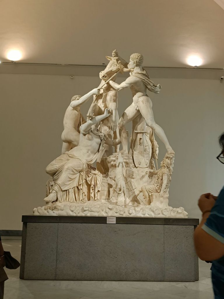 The weather forecast for Sunday was thundery showers, so instead of our planned walk through the old town we headed for the world famous Museum of Archaeology. The museum is free on the first Sunday of every month so lots of other people had the same idea, we had to queue for an hour, the rain held off until he last minute but when it came it poured. The museum was fantastic, it has lots of frescos and artefacts from Pompeii and Herculaneum and some a amazing roman statues and bronzes. We spent several hours there and made the most of a rainy day.