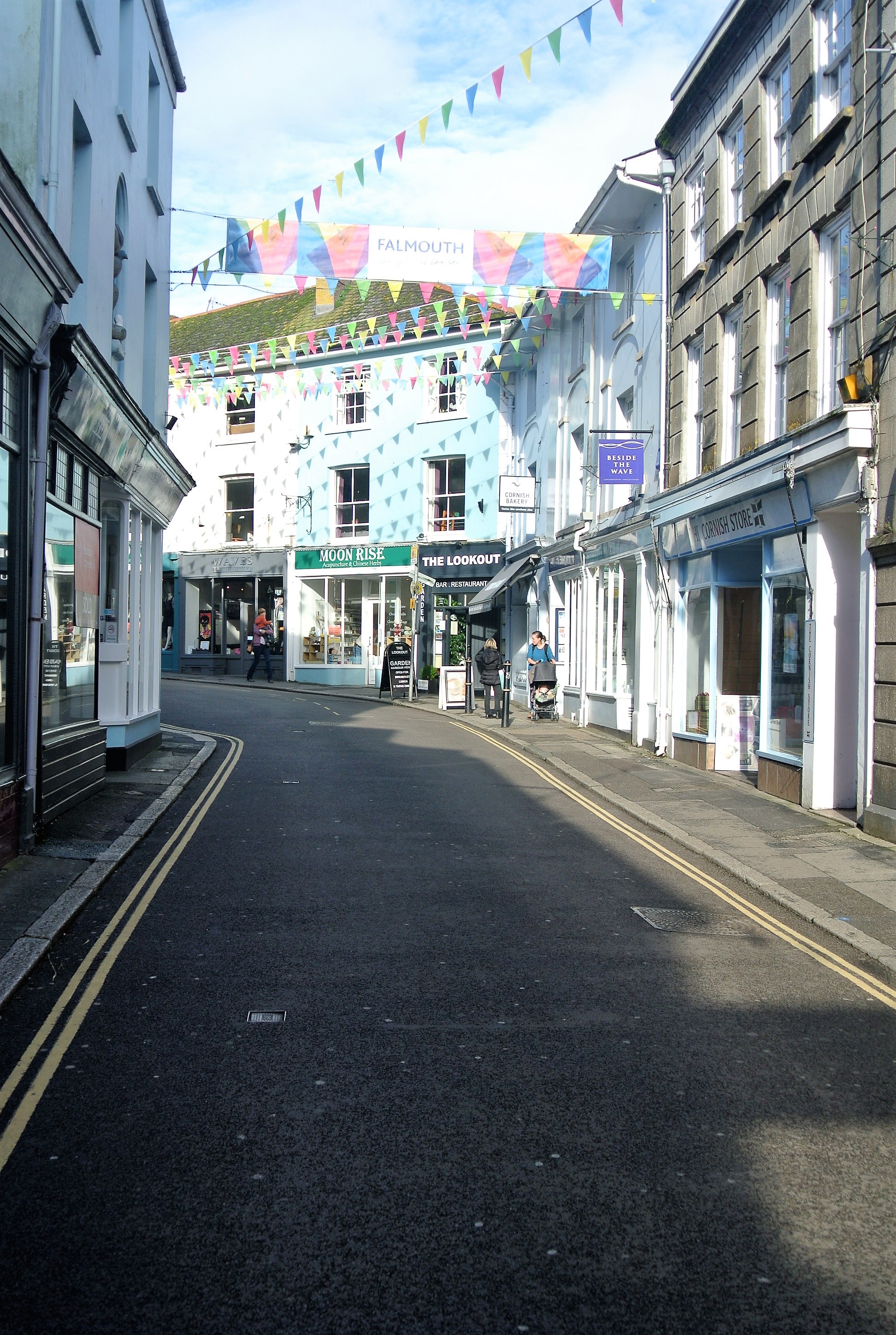 Today the sun came out so we went to Falmouth! This is a view looking up Church Street. I really liked the way the shadows of the flags hit the building at the end but thought it lacked something and I guess it was people. Later I took another one looking down Church Street when it was busier.